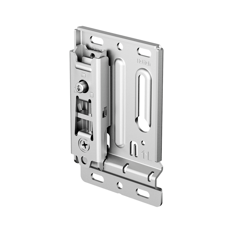 Wandteil zum Anschrauben an die WandIntegrierte Aushängesicherung verhindert unbeabsichtigtes Herunterfallen des Hängeschrankes (gemäß Möbelnorm DIN EN 14749)Belastbarkeit 110 kg/Stück gemäß DIN EN 15