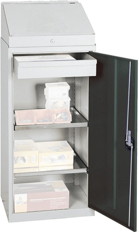 Werkzeug- und Materialschrank Serie 2000, 1 Schreibpultaufsatz, 1 Schublade, 2 Fachböden • Geeignet für Produktionsbereiche • Material: Qualitätsfeinblech, verschweißt • Oberfläche: pulverbeschichtet
