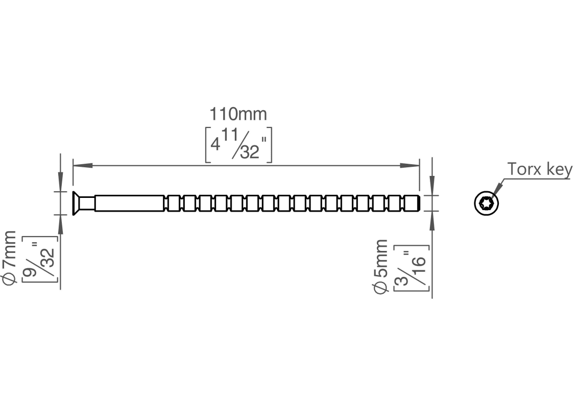 Knud Holscher Kollektion, Abgeschnittener Bolzen, M5x110mm, mit Drehsicherung aus vernickeltem Messing. 20 Jahre Garantie.