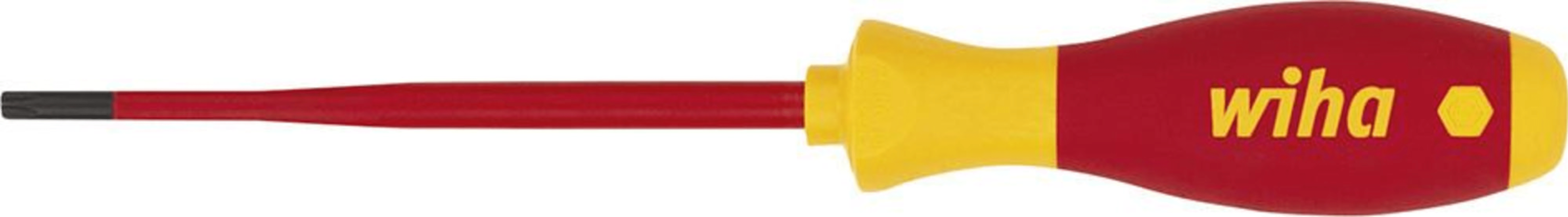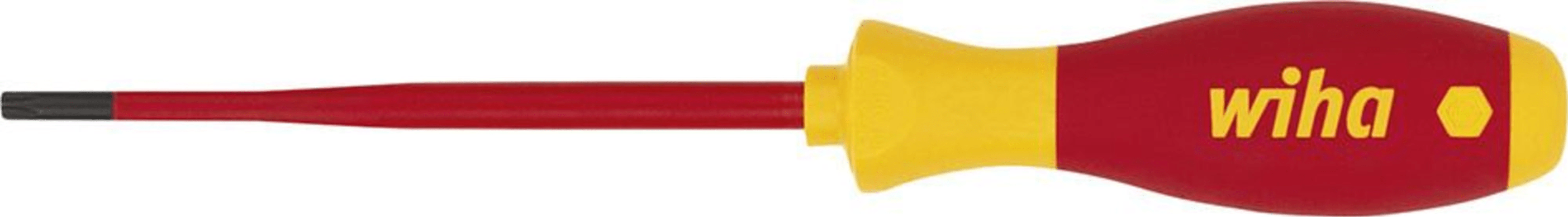 VDE-Slim-Schraubendreher für TORX®-Schraube • Runde Kling • Brünier • Hochlegiertem Sonderstah • slimTECHNOLOG • Schlankere Klingen durch integrierte Schutzisolatio • SoftFinish®-Mehrkomponenten-Grif • Abrollschut • Kopfprägung mit Abtriebssymbol und Größ • Isoliert bis 1000 V AC und 1500 V DC nach IEC 60900