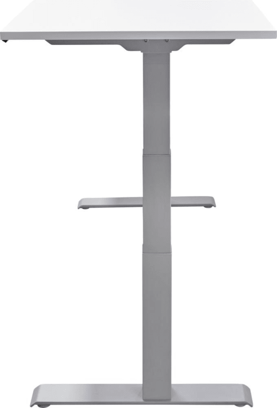 Schreibtisch, elektrisch höhenverstellbar von 640–1290 mm • Gestell/Tischfuß: aus Stahl, silber pulverbeschichtet • Tischplatte: melaminharzbeschichtete Spanplatte nach DIN 14322 Emissionsklasse E1 E