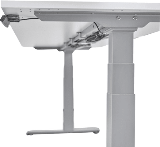 Schreibtisch, elektrisch höhenverstellbar von 640–1290 mm • Gestell/Tischfuß: aus Stahl, silber pulverbeschichtet • Tischplatte: melaminharzbeschichtete Spanplatte nach DIN 14322 Emissionsklasse E1 E05 TSCA, 25 mm dick, mit umlaufender ABS-Dickkante • Traversenfrei • 2 Motoren: in den Säulen integriert • Hubgeschwindigkeit von 36 mm/sec. • Stand-by Verbrauch: kleiner/gleich 0,1 W • Bedienung: erfolgt über einen Memory-Schalter (mit 3 Speicherplätzen) unterhalb der Tischplatte Lieferung: Erfolgt zerlegt. Hinweis: Für den Einklemmschutz sorgt ein hochempfindlicher Giro-Sensor. Wichtig, der Sicherheitsspalt zwischen den Arbeitsplätzen sollte 30 mm sein.