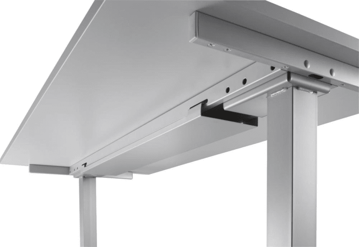 Schreibtischserie X, höhenverstellbar 635–1285 mm • Gestell: Quadratstahlrohr, silber pulverbeschichtet • Tischplatte: melaminharzbeschichtete Spanplatte nach DIN 68765 Emissionsklasse E1 E05 TSCA, 25 mm dick, mit 2-mm-ABS-Kanten, gerundet • Stahlrahmen: unter der Tischplatte, 40 x 20 mm, Rechteckrohr mit abklappbarer Kabelwanne • 2 Motoren: in den Säulen integriert • Hubgeschwindigkeit: ca. 36 mm/sec. • Höhenjustierung: ± 5 mm • Mit Schutzkontaktstecker • Stufenlos höhenverstellbar • Bedienung: erfolgt über einenen Memory-Schalter mit 4 Speicherplätzen, Sanft-Anlauf/Sanft-Stopp mit Auffahrschutz • Display Memory-Schalter: links/rechts unter der Tischplatte montierbar • Abschaltung bei Nichtgebrauch, Stromverbrauch im Stand-by 0,3 Watt Lieferung: Erfolgt zerlegt. Hinweis: Eine Verkettung ist nicht möglich. Wichtig, der Sicherheitsspalt zwischen den Arbeitsplätzen sollte 30 mm sein.