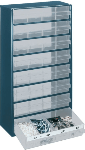 • Schubladenmagazine (dunkelblau) aus galvanisiertem, lackiertem Stahl