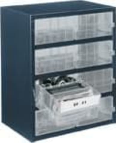Schubladenmagazin 250, Typ 8-2 • Schubladenmagazine (dunkelblau) aus galvanisiertem, lackiertem Stahl • Schubladen aus verschleißfestem, transparentem Polypropylen • Reichlich Stauraum auf minimaler Fläche • Zur Wandmontage oder zur Unterbringung im Drehturm • Mit Stopprand gegen Herausfallen • Je Lade durch Trennwände in 4 Fächer unterteilbar Lieferung: Schubladenmagazin 250, Typ 8-2, 8 Schubladen 250-2.