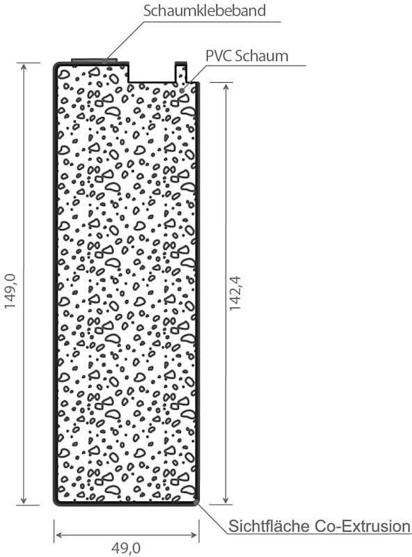 Schüco-Bodeneinstand 150 mm SK Lg. 6,50 m Grau, 149x49 mm PVC Schaum für Schwelle Nutzhöhe: ca. 145 mm