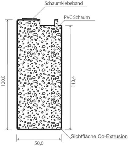Schüco-Bodeneinstand 120 mm SK Lg. 6,50 m Grau, 120x50 mm PVC Schaum für Schwelle Nutzhöhe: ca. 116,0 mm