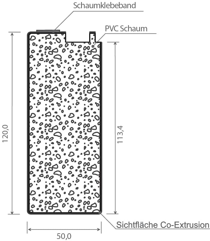 Schüco-Bodeneinstand 120 mm SK Lg. 6,50 m Weiß, 120x50 mm PVC Schaum für 70er & 82er Nutzhöhe: ca. 113,4 mm
