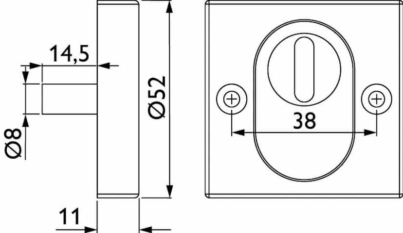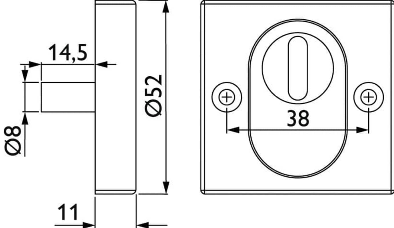 HERMAT Schutzrosette 2011 S; Produkttyp: Schutzrosette; Produkttyp (Hersteller): Außenrosette; Form: eckig; Material: Edelstahl; Montageart: aufliegend; Befestigungsart: verdeckt verschraubt; Länge Ro
