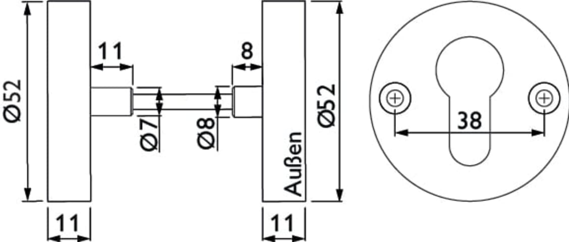 Schutz-Außenrosette 2032 S-ER, PZ - 11 mm Außenrosettenhöhe, inkl. Schrauben für TS 36-53, 66-83, 76-93 mm, Schraubenlängen - M5 x 50/80/90, Oberfl. 60 (Edelstahl matt)