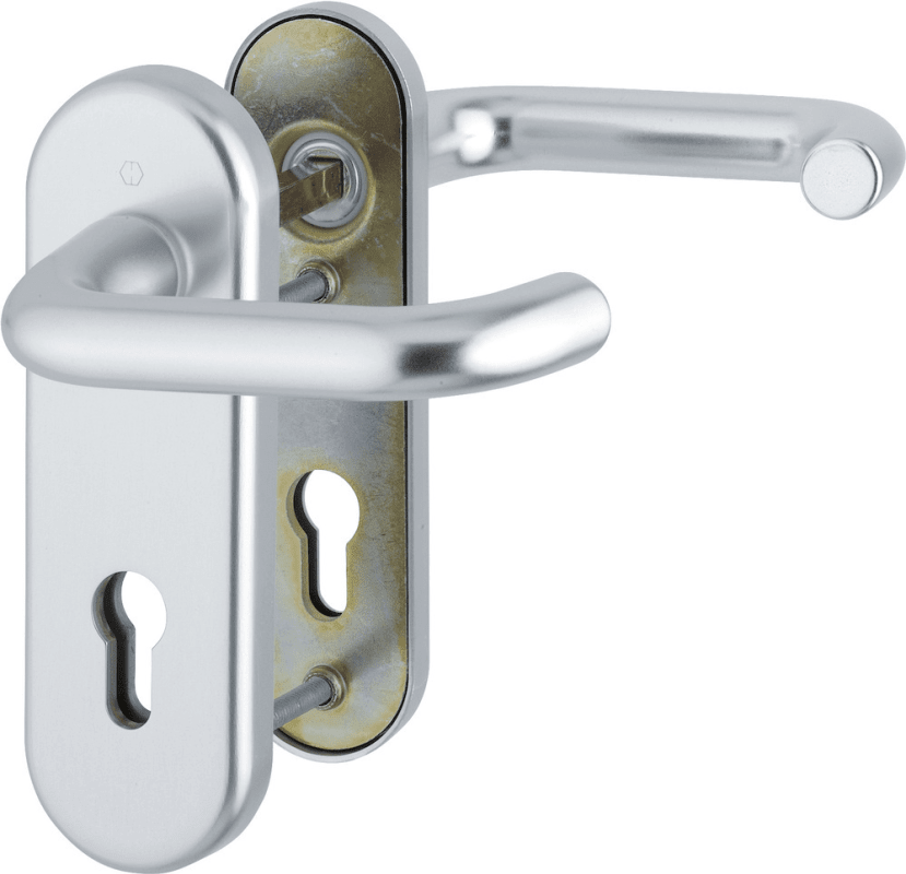 HOPPE Vollblatt Sicherheits-Drückergarnitur Paris 138L/3331K/353K-1,Kurzschild,ES 1,ohne Zylinderabdeckung 72/8,DIN Links-Rechts,naturfarben eloxiert,Türstärke37-42,U-Form/U-Form