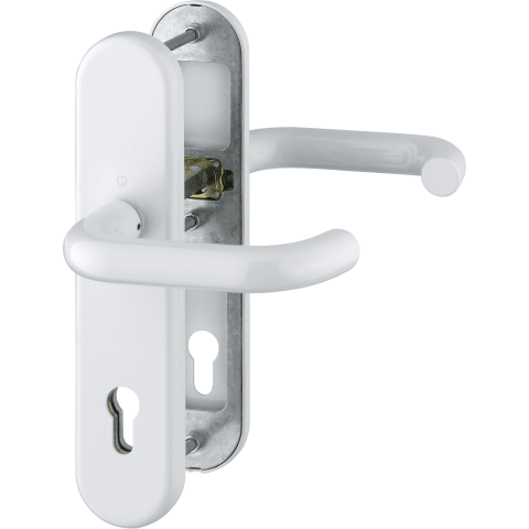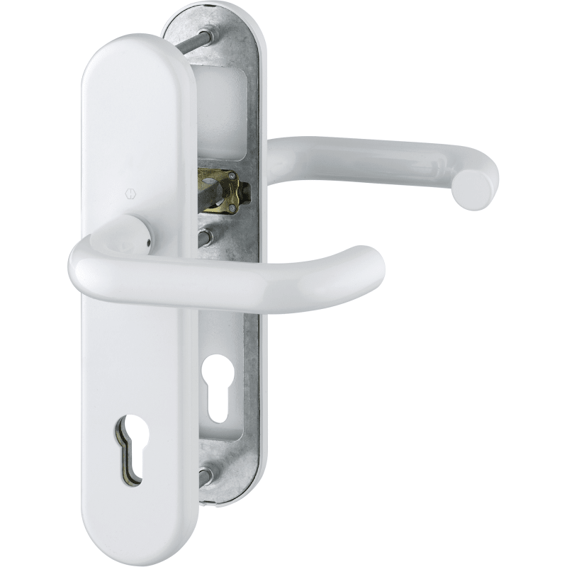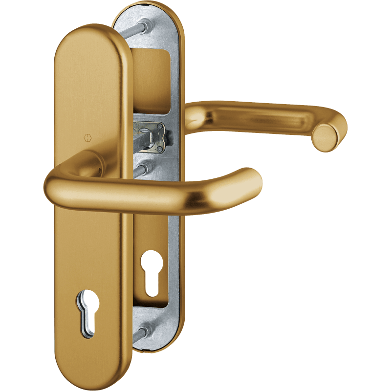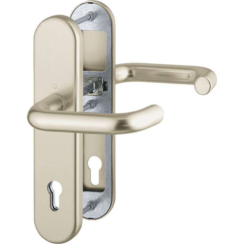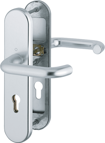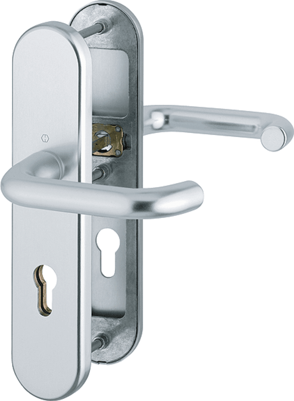 HOPPE Vollblatt Sicherheits-Drückergarnitur Paris 138L/3331/3310,Langschild,ES 1,ohne Zylinderabdeckung 72/8,DIN Links-Rechts,naturfarben eloxiert,Türstärke42-47,U-Form/U-Form