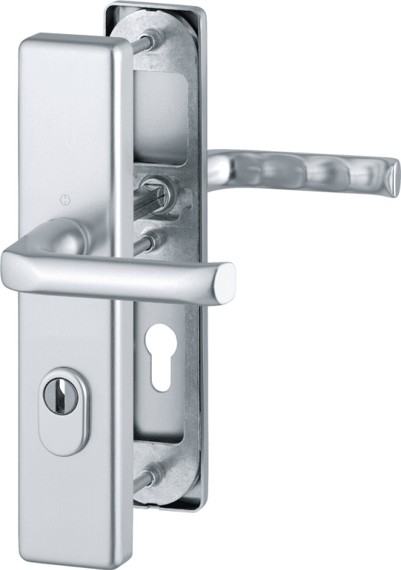 HOPPE Vollblatt Sicherheits-Drückergarnitur London 113/2222ZA/2210,Langschild,ES 1,mit Zylinderabdeckung 72/8,DIN Links-Rechts,naturfarben eloxiert,Türstärke37-47,gekröpft/gekröpft