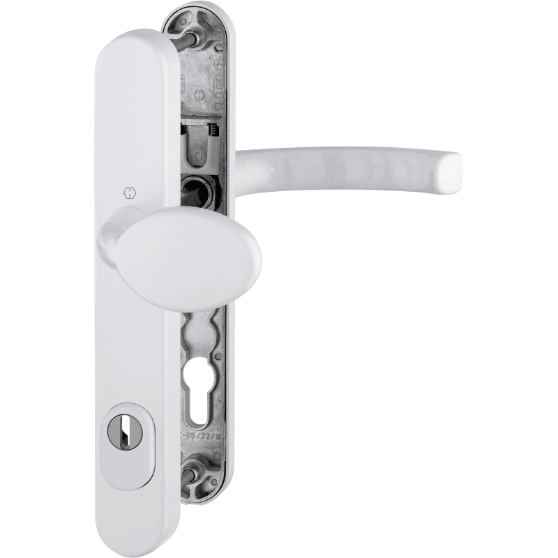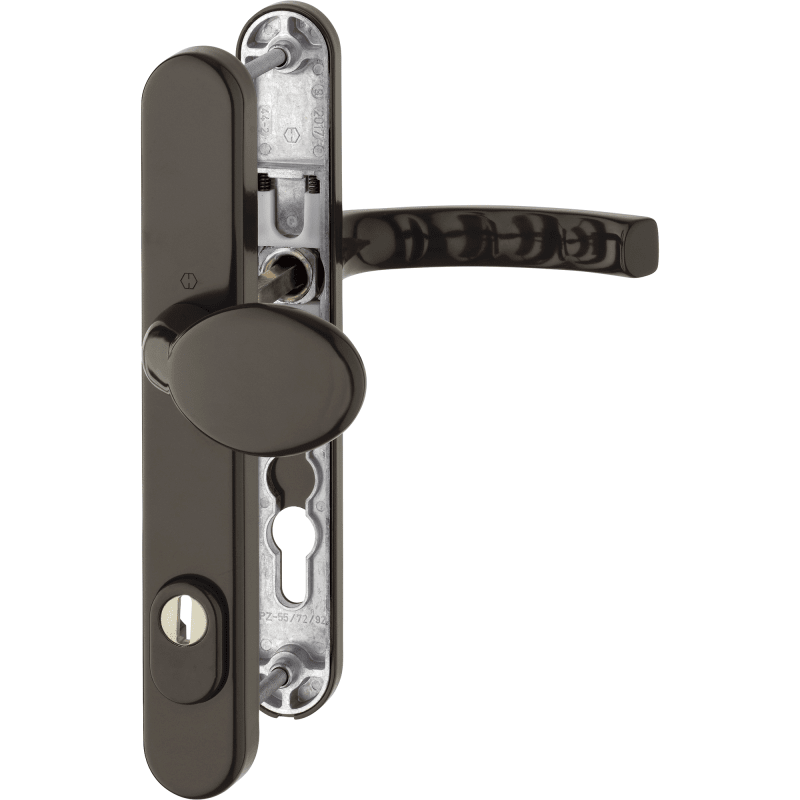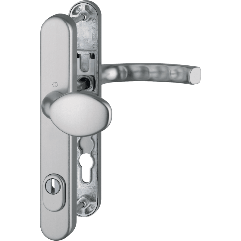 HOPPE Rohrrahmen Sicherheits-Wechselgarnitur Liège 76G/3359ZA/3357N/1540,Langschild,mit Zylinderabdeckung 92/8,DIN Links-Rechts,stahlfarbig eloxiert,Türstärke67-72,gekröpft/gebogen fest