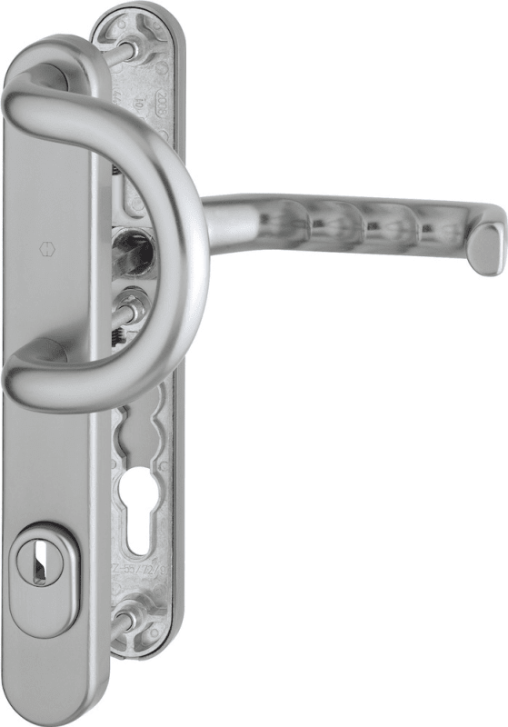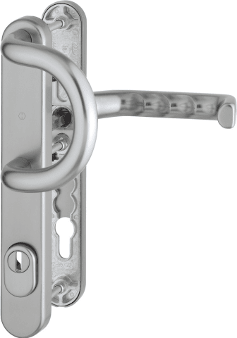 HOPPE Rohrrahmen Sicherheits-Wechselgarnitur Liverpool 538G/3359ZA/3357N/1313G,Langschild,ES 1,mit Zylinderabdeckung 92/8,DIN Links-Rechts,stahlfarbig eloxiert,Türstärke67-72,Stoßgriff gebogen/U-Form
