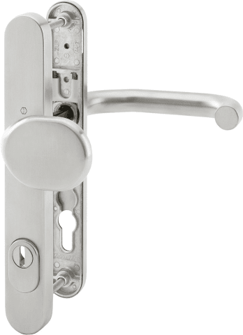 HOPPE Rohrrahmen Sicherheits-Wechselgarnitur Paris E86G/3359ZA/3357N/138GF,Langschild,ES 1,mit Zylinderabdeckung 92/8,DIN Links-Rechts,edelstahl matt,Türstärke57-62,gekröpft/U-Form gekröpft fest