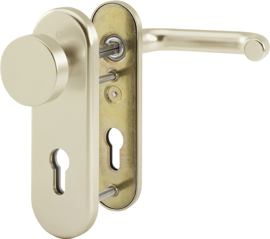 HOPPE Vollblatt Sicherheits-Wechselgarnitur Paris 58/3331K/353K-1/138L,Kurzschild,ES 1,ohne Zylinderabdeckung 72/8,DIN Links-Rechts,neusilberfarben eloxiert,Türstärke37-42,rund/U-Form fest