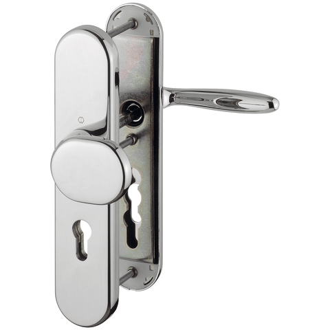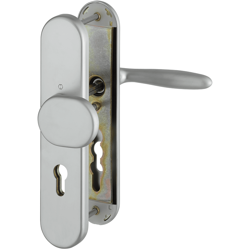 HOPPE Vollblatt Sicherheits-Wechselgarnitur Verona M86G/3331/3310/151,Langschild,ES 1,ohne Zylinderabdeckung 72/8,DIN Links-Rechts,messingfarben poliert-Resista®,Türstärke42-47,gekröpft/gerade fest