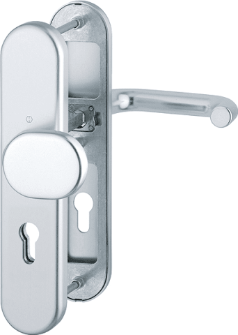 HOPPE Sicherheits-Wechselgarnitur Paris 86G/3331/3310/138L, Langschild oval, 12mm, ES 1, ohne Zylinderabdeckung, Profilzylinder gelocht, Entfernung 72mm, Vierkant 8mm,Türstärke 42-47mm, naturfarben el