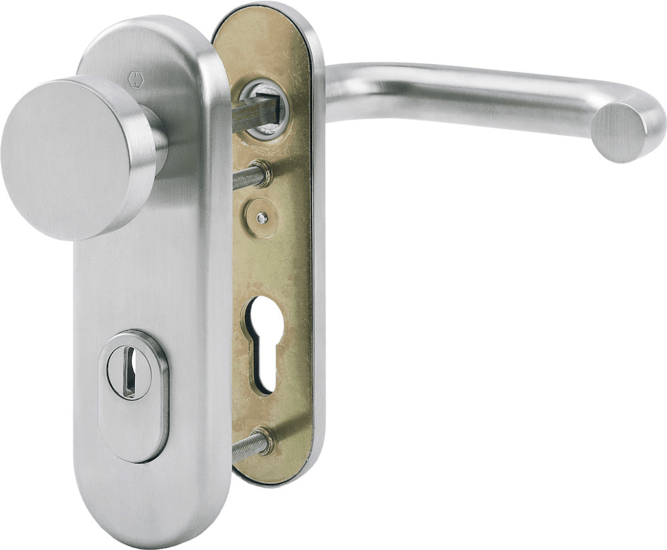 HOPPE Vollblatt Sicherheits-Wechselgarnitur Paris E58/3332KZA/353K-1/138Z,Kurzschild,ES 1,mit Zylinderabdeckung 72/8,DIN Links-Rechts,edelstahl matt,Türstärke37-42,rund/U-Form fest