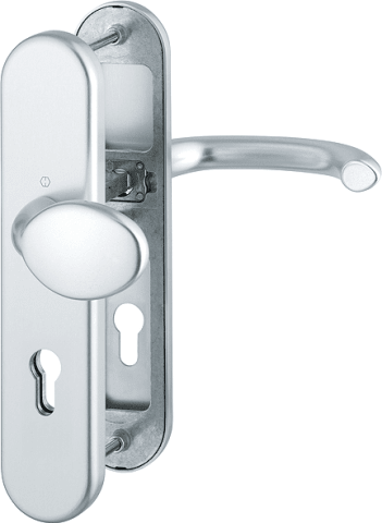 HOPPE Vollblatt Sicherheits-Wechselgarnitur Marseille 76G/3331/3410/1138,Langschild,ES 1,ohne Zylinderabdeckung 72/8,DIN Links-Rechts,naturfarben eloxiert,Türstärke41-46,gekröpft/gebogen fest
