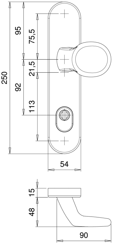 Dieckmann Alu-Schutz-Drücker-Garnitur, ES-1, Serie Uranus, ovales Langschild 12mm, 92 PZ,, 8mm VKT, festdrehbar gelagert, 1300/054 F09
