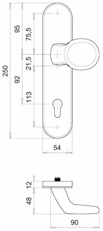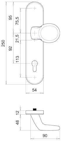 Dieckmann Alu-Schutz-Drücker-Garnitur, ES-1, Serie Uranus, ovales Langschild 12mm, 92 PZ,, 8mm VKT, festdrehbar gelagert, 1300/054 F12