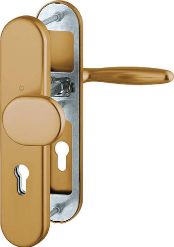 HOPPE Vollblatt Sicherheits-Wechselgarnitur Verona 86G/3331/3310/1510,Langschild,ES 1,ohne Zylinderabdeckung 72/8,DIN Links-Rechts,bronzefarben eloxiert,Türstärke42-47,gekröpft/gerade fest