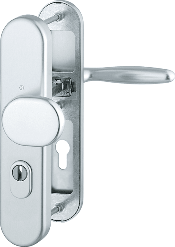 HOPPE Vollblatt Sicherheits-Wechselgarnitur Verona 86G/3332ZA/3310/1510,Langschild,ES 1,mit Zylinderabdeckung 72/8,DIN Links-Rechts,naturfarben eloxiert,Türstärke42-47,gekröpft/gerade fest