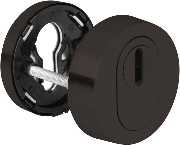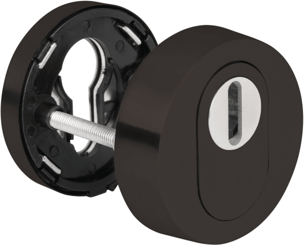 Schutz-Außenrosette 2038 KS mit Innenros. 2073 PZ, PZ mit Kernziehschutz innen unsichtbar verschraubt, für Zylinderüberstand 10 - 17 mm, inkl. Schrauben für Tst. 30-41, 58-70, 74-86 mm, Oberfl. 72 (Smoke Black)