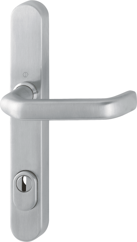HOPPE Vollblatt Sicherheits-Halbgarnitur Liverpool E1313G/3359ZA,Langschild,ES 1 (SK2),ohne Zylinderabdeckung 92/8,DIN Links-Rechts,edelstahl matt,U-Form gekröpft