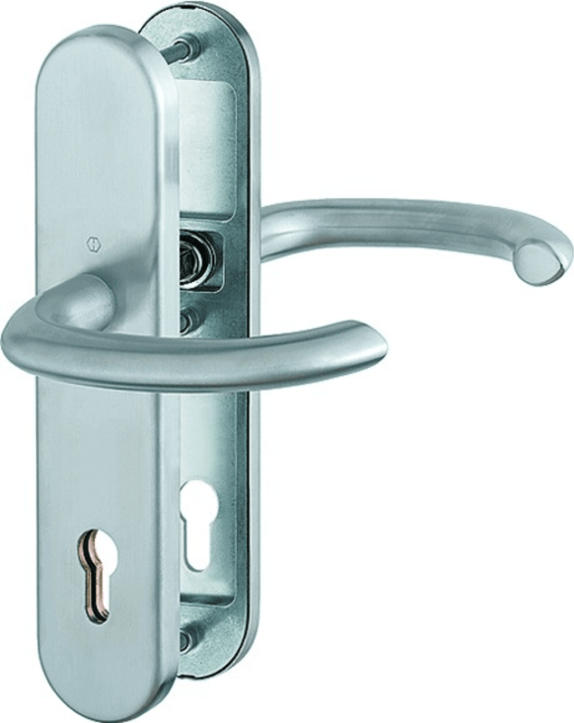 HOPPE® Schutz-Drückergarnitur Marseille FS-E1138F/3331/3310; Abdeckung: Langschild; Widerstandsklasse: ES 1 (SK2); Form: oval; Vierkant: 9 mm; Material: Edelstahl; Lagerung: Gleitlager,wartungsfrei,fe
