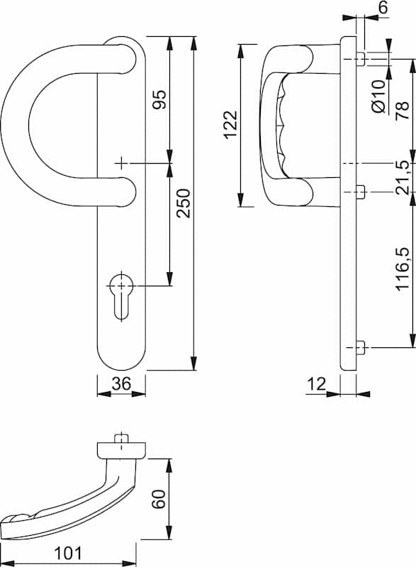 HOPPE Rohrrahmen Sicherheits-Halbgarnitur 513G/3358,Langschild,ES 1,ohne Zylinderabdeckung 92,DIN Links-Rechts,verkehrsweiß beschichtet,gebogen halbrund fest
