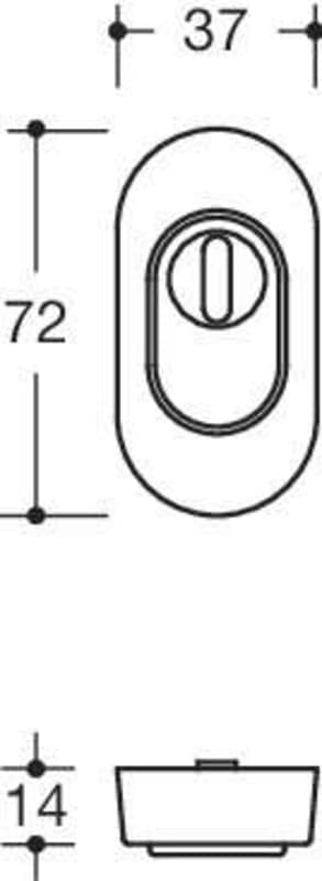 HEWI Schutzrosette 316XAESZLN; Produkttyp: Schutzrosette; Produkttyp (Hersteller): Schutzrosette; Form: oval; Zulassung: für Feuerschutz,für Rauchschutz; Material: Edelstahl; Montageart: aufliegend; Befestigungsart: verdeckt verschraubt; Länge Rosette (außen): 72 mm; Breite Rosette (außen): 37 mm; Material Unterkonstruktion: Kunststoff-Edelstahlverbundbau; Einsatzbereich: Objekttür; Türart: Rohrrahmen; Türwerkstoff: Kunststoff,Aluminium; Zylinderabdeckung: mit Zylinderabdeckung; Lochung: Profilzylinder gelocht; Farbe: grau; Farbton: edelstahl; Oberfläche: matt; Höhe Rosette (außen): 14 mm; Höhe Rosette (innen): 10,5 mm; Zylinderüberstand min.: 10,5 mm; Zylinderüberstand max.: 15 mm; Norm: DIN 18273