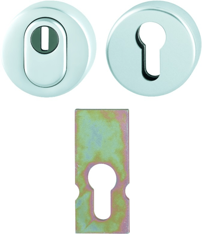 HOPPE Schutzrosette 42NSB-ZA/42HS, aufliegend, rund, 15mm, ES 1, mit Zylinderabdeckung/Profilzylinder gelocht, naturfarben eloxiert, Türstärke 57 - 62mm
