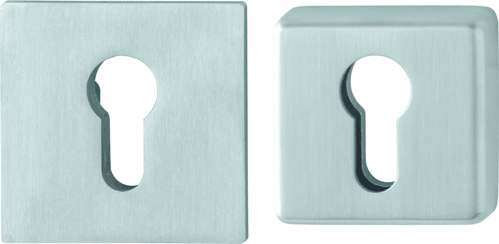 HOPPE Schutzrosette E75ZNSB/52S, aufliegend, eckig/flach, 2mm, ohne Zylinderabdeckung/Profilzylinder gelocht, edelstahl matt, Türstärke 65 - 75mm