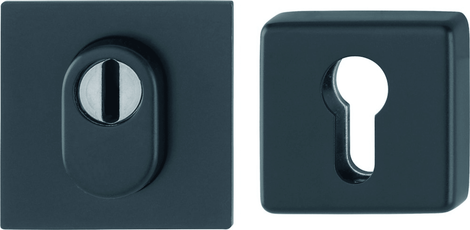 HOPPE Schutzrosette E75ZNSB-ZA/52S, aufliegend, eckig/flach, 15mm, ohne Zylinderabdeckung/Profilzylinder gelocht, schwarz matt, Türstärke 65 - 75mm