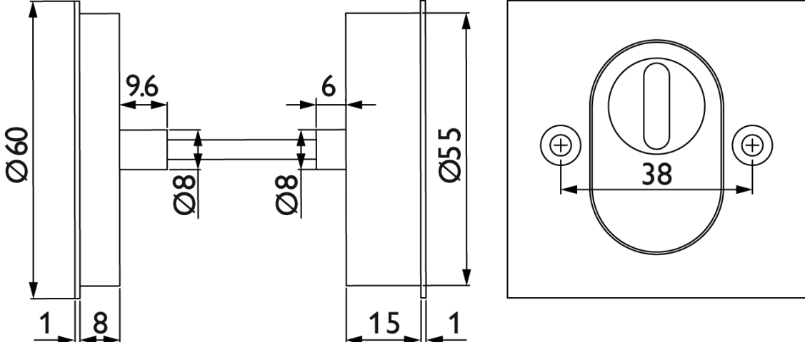 Schutzrosette 2011 KS Flach/1 mm hoch, PZ mit Kernziehschutz innen unsichtbar verschraubt, für Zylinderüberstand -4 bis + 2 mm, inkl. Schrauben für Türstärke 60-72, 74-85 mm, Oberfl. 60 (Edelstahl mat