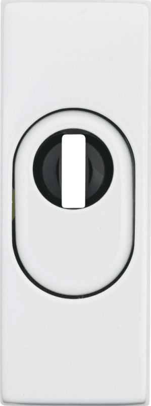 Rechteckige Schutzrosette für alle Türen aus Metall. Überall dort, wo für Schutzbeschläge kein Platz ist oder dies aus optischen Gründen unvorteilhaft wirkt, bietet sich die Montage von Schutzrosetten