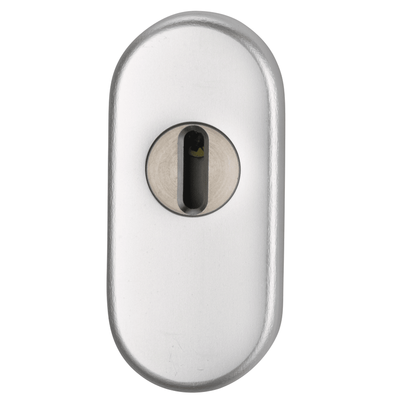Schutzrosette Ares 0811/14, aufliegend, oval, 14,5mm, mit Zylinderabdeckung/Profilzylinder gelocht, RAL 9016 beschichtet, ohne Stütznocken