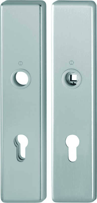 HOPPE Schutz-Langschild 2221/2210 eckig, ES 1, ohne Zylinderabdeckung, Profilzylinder gelocht, Entfernung 72mm, Vierkant 8mm,Türstärke 37-47mm, stahlfarbig eloxiert