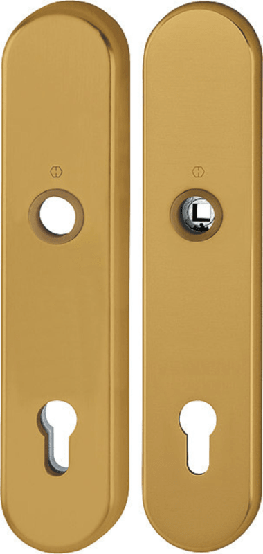 HOPPE Schutz-Langschild 3331/3310 oval, ES 1, ohne Zylinderabdeckung, Profilzylinder gelocht, Entfernung 92mm, Vierkant 10/8mm,Türstärke 67-77mm, bronzefarben eloxiert