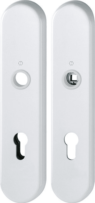 HOPPE Schutz-Langschild 3331/3310 oval, ES 1, ohne Zylinderabdeckung, Profilzylinder gelocht, Entfernung 72mm, Vierkant 8mm,Türstärke 37-47mm, verkehrsweiß beschichtet