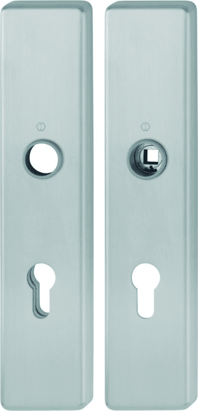 HOPPE Schutz-Langschild E2221/2210 eckig, ES 1, ohne Zylinderabdeckung, Profilzylinder gelocht, Entfernung 72mm, Vierkant 8mm,Türstärke 37-47mm, edelstahl matt