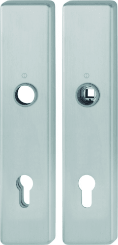 HOPPE Schutz-Langschild E2221/2210 eckig, ES 1, ohne Zylinderabdeckung, Profilzylinder gelocht, Entfernung 92mm, Vierkant 10/8mm,Türstärke 67-77mm, edelstahl matt