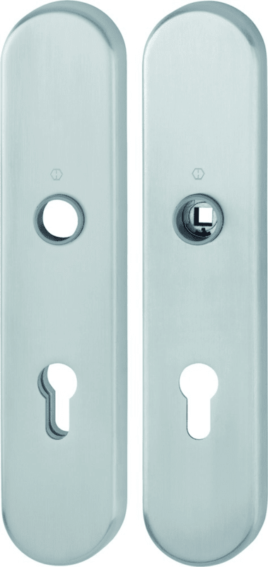 HOPPE Schutz-Langschild E3331/3310 oval, ES 1, ohne Zylinderabdeckung, Profilzylinder gelocht, Entfernung 72mm, Vierkant 8mm,Türstärke 37-47mm, edelstahl matt