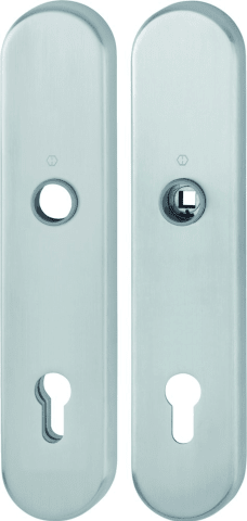 HOPPE Schutz-Langschild E3331/3310 oval, ES 1, ohne Zylinderabdeckung, Profilzylinder gelocht, Entfernung 92mm, Vierkant 10/8mm,Türstärke 67-77mm, edelstahl matt