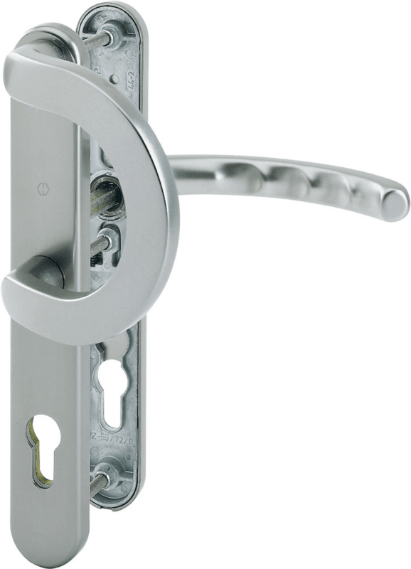 HOPPE Rohrrahmen Sicherheits-Wechselgarnitur Luxembourg 513G/3358/3357N/1500,Langschild,ES 1,ohne Zylinderabdeckung 92/8,DIN Links-Rechts,stahlfarbig eloxiert,Türstärke67-72,Stoßgriff gebogen/gebogen