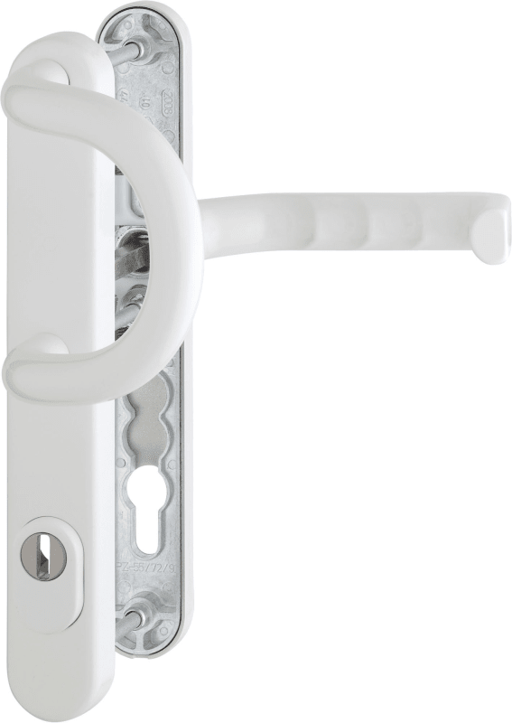 HOPPE Rohrrahmen Sicherheits-Wechselgarnitur Liverpool 538G/3359ZA/3357N/1313G,Langschild,ES 1,mit Zylinderabdeckung 92/8,DIN Links-Rechts,verkehrsweiß beschichtet,Türstärke57-62,Stoßgriff gebogen/U-Form gekröpft fest