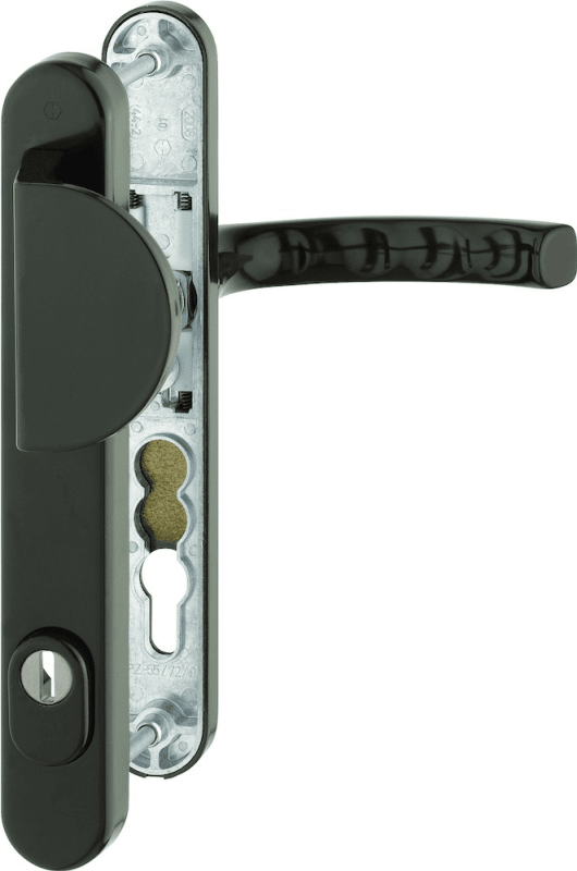 HOPPE® Schutz-Wechselgarnitur Liège 554/3359ZA/3357N/1540; Material: Aluminium; Befestigungsart: verdeckt verschraubt; Vierkant: 8 mm; Befestigungstechnik: mit Stütznocken; Abdeckung: Schmalschild; Lagerung: Gleitlager,wartungsfrei,Hochhaltemechanik; Form: oval; Schildstärke innen: 10 mm; Einsatzbereich: Profiltür; Basis: Schutz-Wechselgarnitur; Ausführung: mit Zylinderabdeckung; Lochung: Profilzylinder gelocht; Entfernung: 92 mm; Türstärke min.: 67 mm; Befestigungssystem: Stiftverbindung; Türstärke max.: 72 mm; Drückerbefestigung: Vollstift; Norm: DIN 18257; DIN-Richtung: DIN Links-Rechts; Eigenschaft: Griffplatte fest auf Schild; Farbton: dunkelbraun seidenglänzend beschichtet; Türart: Außentüren,Rahmentüren; Anschlagrichtung: Drücker rechts/links verwendbar; Türwerkstoff: Aluminium,Kunststoff; Prüfung: RAL-GZ; Schildbreite außen: 36 mm; Schildbreite innen: 36 mm; Schildlänge außen: 250 mm; Schildlänge innen: 250 mm; Griffplattenform: halbrund; Drückerhöhe: 56 mm; Drückerlänge: 132 mm; Material Unterkonstruktion innen: Zamak; Material Unterkonstruktion außen: Stahl; Schildstärke außen: 15 mm; Griffplattenlänge: 80 mm; Griffplattenhöhe: 40 mm; Griffplattenbreite: 64 mm; für Zylinderüberstand min.: 10 mm; für Zylinderüberstand max.: 18 mm; Drückerform: gebogen
